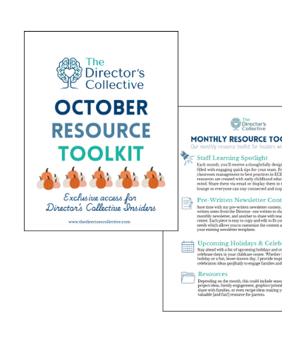 For those who are new to The Director’s Collective, let me be clear: this monthly Resource Toolkit is not another packet of classroom activities for teachers. Your team doesn’t need more Pinterest projects, and you don’t need another binder of ideas gathering dust in your overcrowded office.